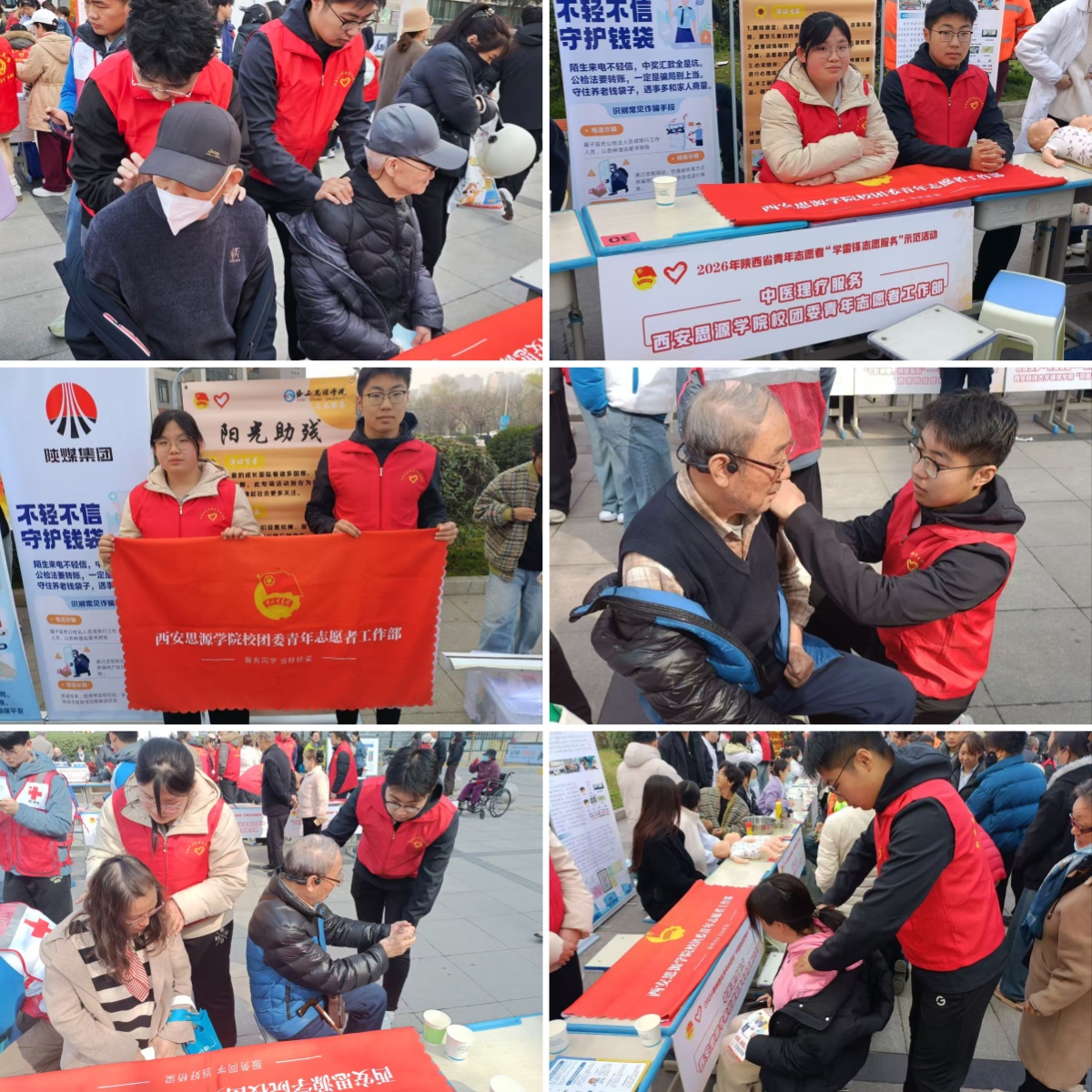 为深刻把握雷锋精神的时代内涵,推动“学雷锋 做志愿共同奋进‘十五五’”主题活动走深走实,2026年3月5日,在第63个学雷锋纪念日之际,由共青团陕西省委主办,共青团西安市委、陕西省青年志愿者协会、共青团西安市灞桥区委、灞桥区委社会工作部、灞桥区委文明办承办,灞桥区红旗街道、红旗街道联盟社区协办的“3·5”学雷锋省级示范活动,在灞桥区红旗街道水岸东方一期西门广场成功举办。我校团委积极响应号召,组织青年志愿者精准聚焦“服务重点群体,做优‘一老一小’关爱服务”的要求,结合学校专业特色,以“健康相伴暖民心,中医志愿践初心”为主题,为社区居民特别是老年群体提供了专业、暖心的中医健康志愿服务,以实际行动践行“强化校社联动,精准对接区域发展需求”。