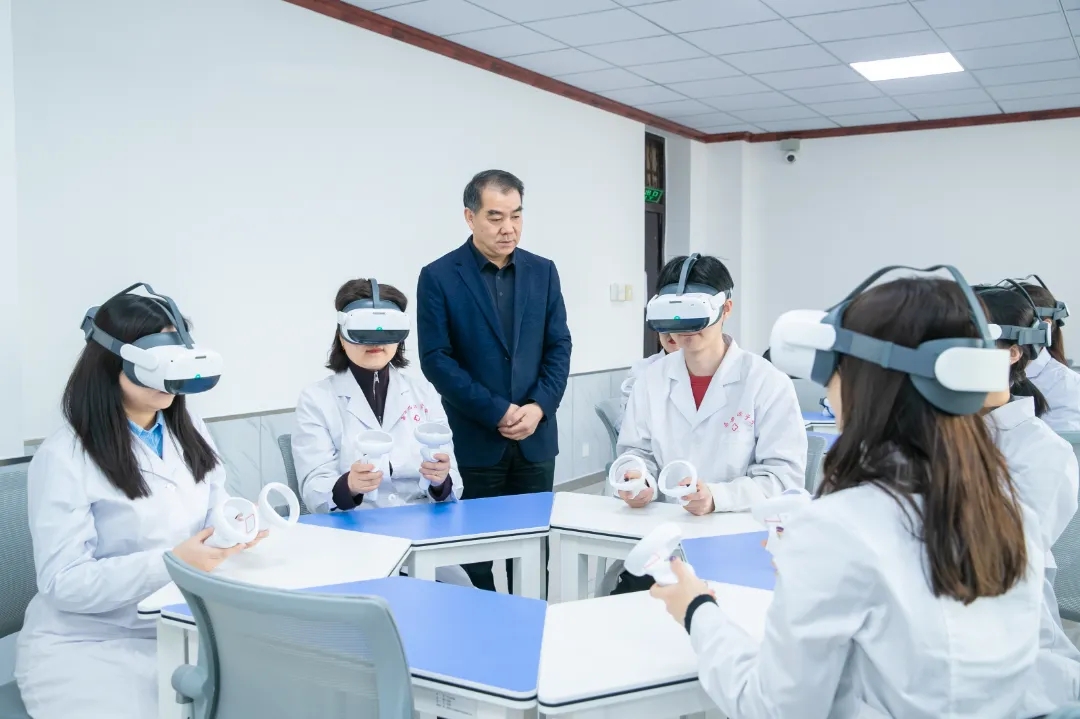 西安思源学院医学院院长张进生检查教师使用虚拟仿真实训室VR设备情况