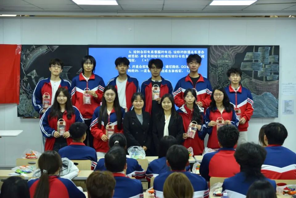 活动最后,陆玉老师和袁天婧老师共同为本次预防电信诈骗知识抢答赛的前五名获奖班级代表颁奖,并鼓励同学们持续学习防诈知识,提高防诈反诈安全意识,扎实筑牢校园安全防护屏障。