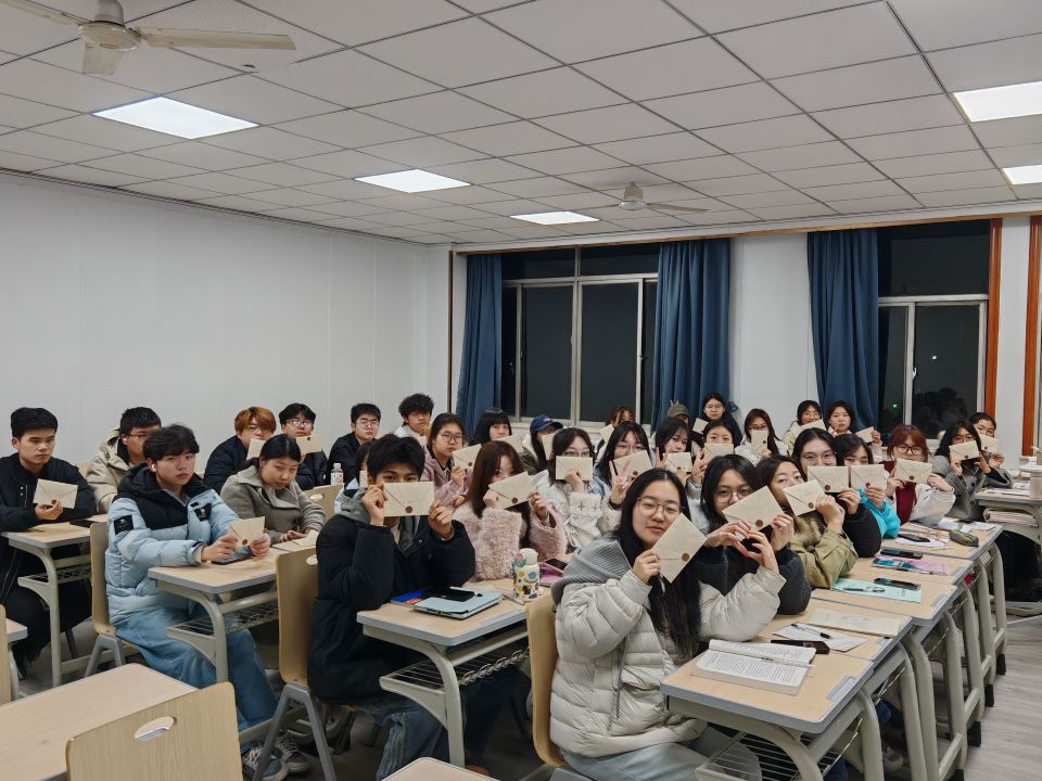 本次班会的核心环节是“时光慢递”书信活动。在班长的引导下,同学们围绕多个维度展开书写:四年后希望成为怎样的人、在专业学习上希望达到什么水平、希望参与哪些有意义的实践项目、如何将个人品德修养与社会责任融入未来规划,以及对四年后的自己想说些什么。同学们将当下的思考与期许倾注笔端,认真书写致四年后自己的一封信。