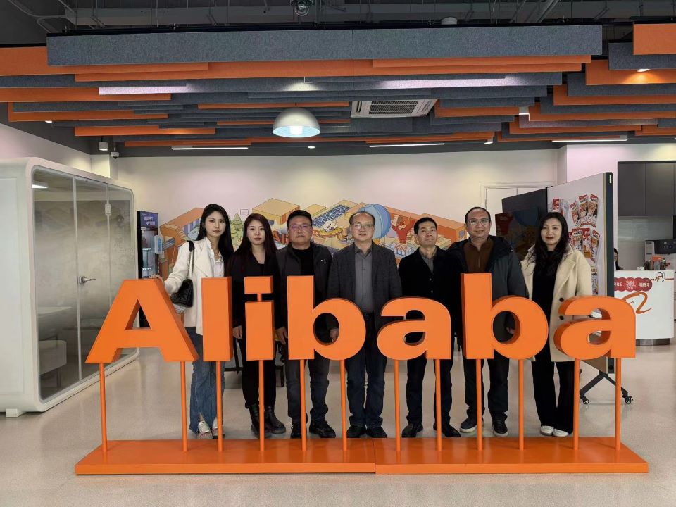 在阿里巴巴相关负责人陪同下,学院团队实地参观了阿里巴巴西北总部展厅,深入了解阿里巴巴在云计算、大数据、人工智能、数字贸易等领域的前沿技术成果与创新应用实践。教师们对电商生态体系、用户行为分析、智能推荐系统以及数据驱动的商业决策机制有了更加直观地认识,深刻感受到数字化转型对传统商业模式的深刻变革。