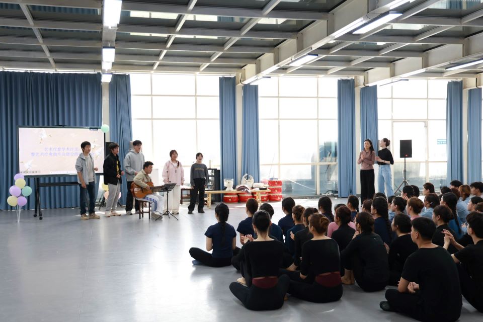 本次沙龙的核心环节,是许靖博士带来的艺术疗愈基础破冰体验课。许博士摒弃传统课堂的理论灌输模式,将专业学术理念与趣味实践活动深度融合,结合舞蹈艺术专业特色,精心设计了一系列互动性、体验感十足的沉浸式环节。她耐心引导同学们放下拘谨、敞开心扉,通过肢体表达、情绪感知、创意互动等多样形式,让大家在亲身参与中触摸艺术疗愈的内核,感受艺术与心灵双向奔赴的温柔力量。