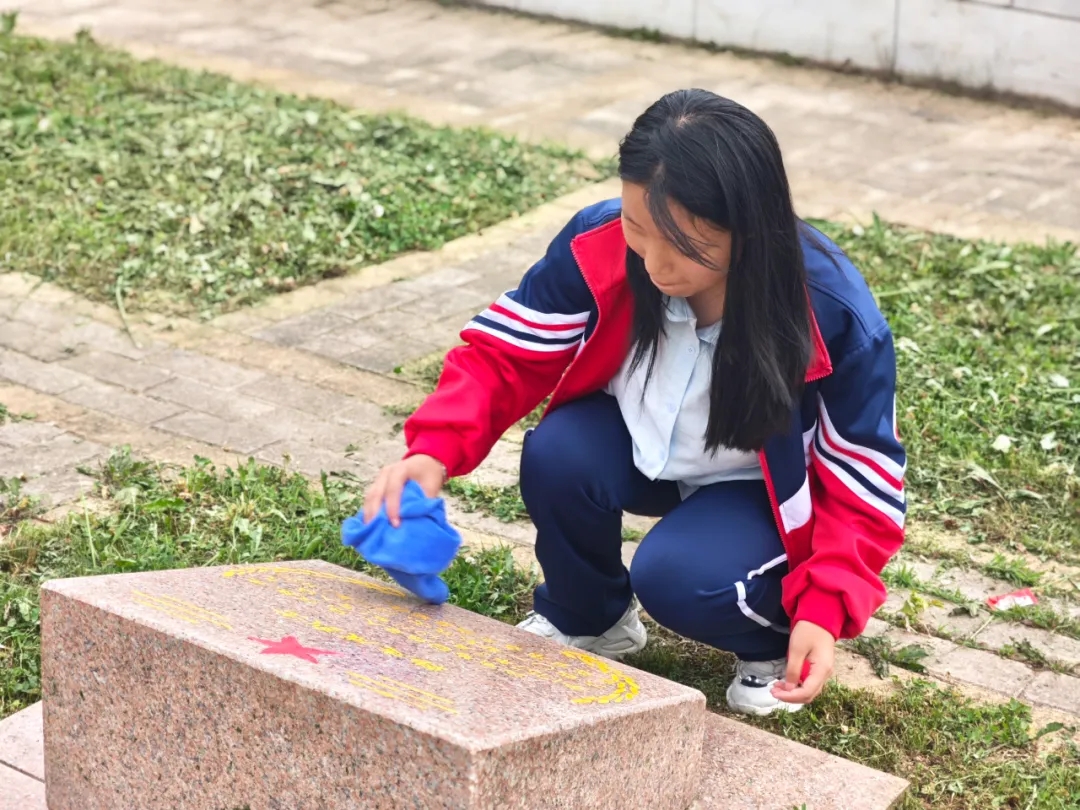 祭扫尾声,同学们自发用毛巾擦拭墓碑、拔除杂草、清理步道,以实际行动守护英烈安息之地。细致的动作、专注的神情,彰显着青年学子对英烈的崇敬,也使文明祭扫理念深入人心。