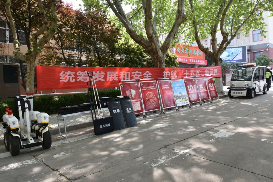 为深入贯彻总体国家安全观,落实上级关于2026年全民国家安全教育日普法宣传工作部署,在第11个全民国家安全教育日到来之际,保卫处以“统筹发展和安全,护航‘十五五’新征程”为主题,在校园核心区域开展系列宣传教育活动,通过主题展板、宣传横幅、电子大屏、普法手册、反恐防暴装备展示等多元形式,推动国家安全知识走进师生、入脑入心,全面筑牢校园安全屏障。